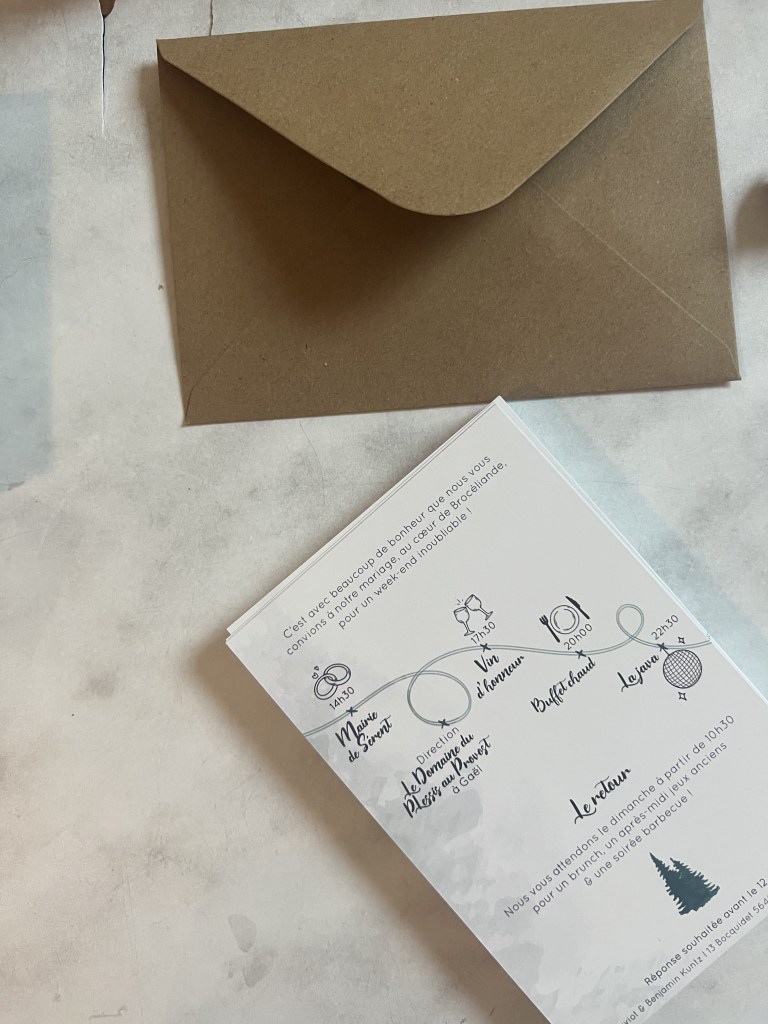 - Nous vous transmettons une première ébauche, on échange, on ajuste. On affine pour réaliser le devis imprimeur selon le type de papier choisi, les couleurs et effets et la quantité.